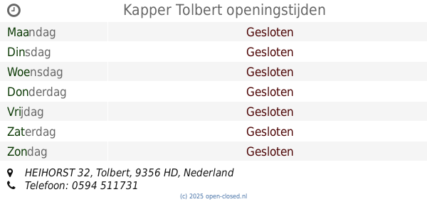 Het is ook mogelijk: Bewerk deze OPENINGSTIJDEN van Winkel Kapper In Tolbert, HEIHORST 32,